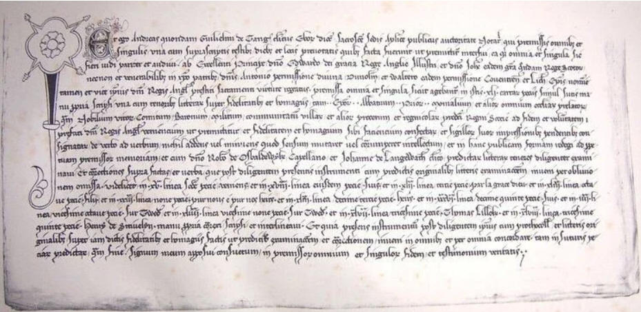 at Norham on Tweed in 1291. Edward insisted on all the nobles signing an