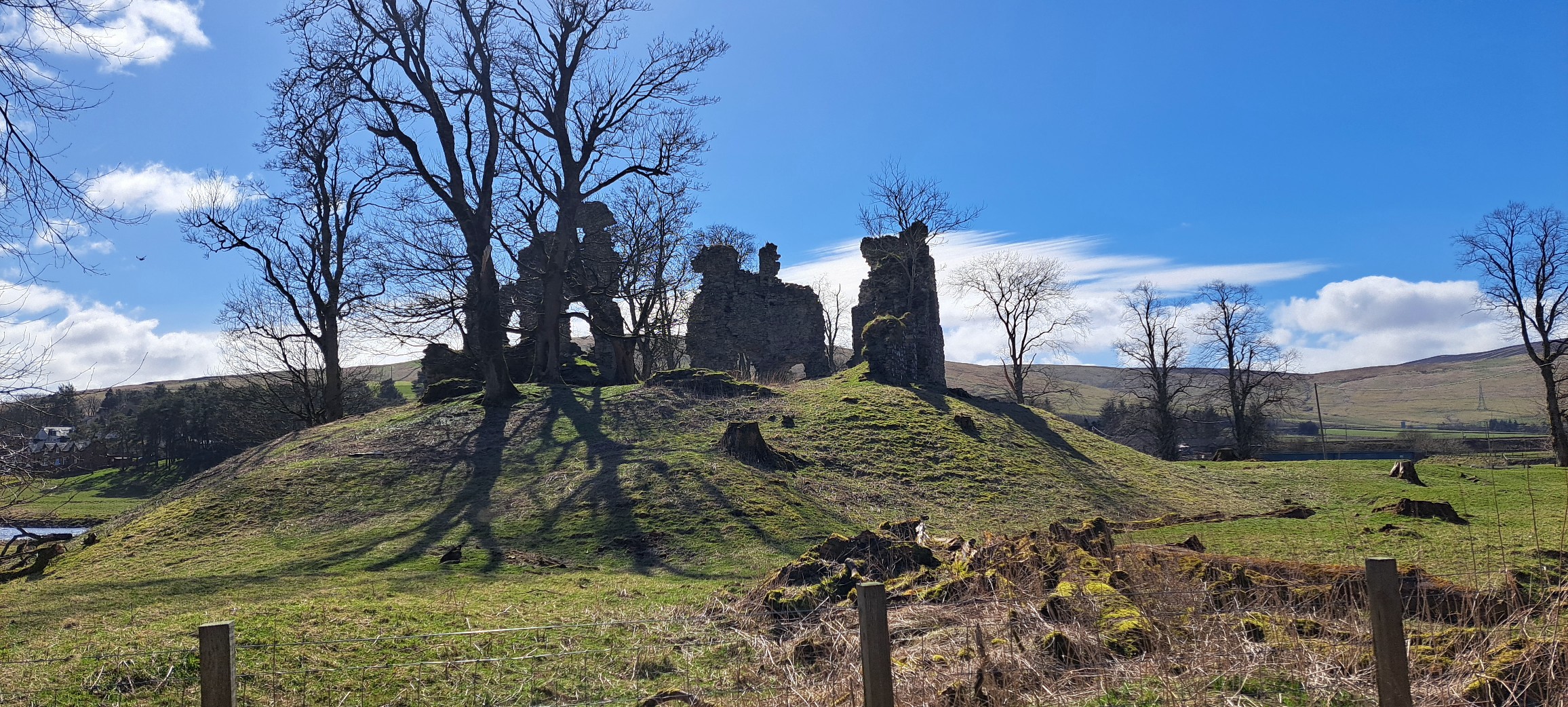 Crawford Castle, substantially in ruins, is located on