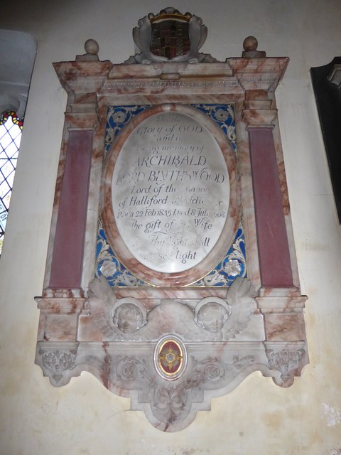 monument in the church chancel by the Thames on which he is titled Lord of the Manor of Halliford, Middlesex.