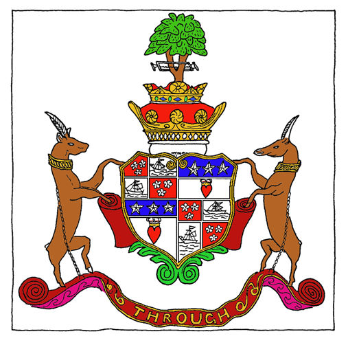 quarters: Argent, a ship with sails furled, sable, symbolizing Arran.