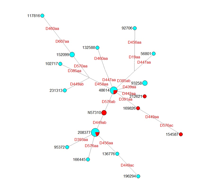 Chart of Douglas b1174 and Douglas b1610 DNA
