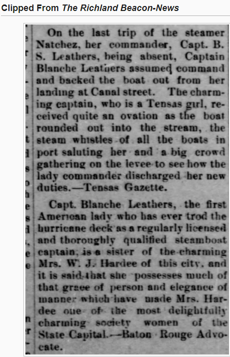 of Bowling Starke Leathers who were steamboat captains of the famous