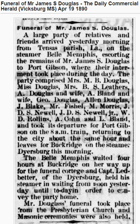 Stuart Douglass, was a cotton planter. She married Captain Bowling S.