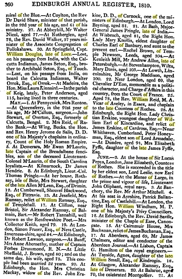 Captain William Douglas, Late of Luce (23rd May 1810 - Aberdeen Journal).jpg