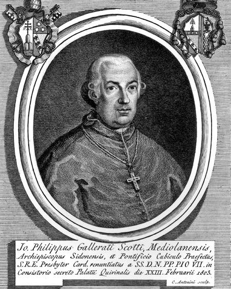 Following his days in Malta, Giovanni Filippo Gallarati Scotti was on 23 February 1801, nominated Cardinal of San Lorenzo. (Note discrepancy with the list below)