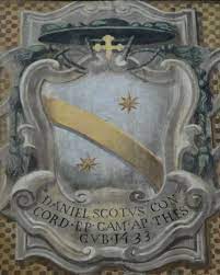 The scroll below says: DANIEL SCOTVS CON / CORD · EP · CAM · AP · THES /