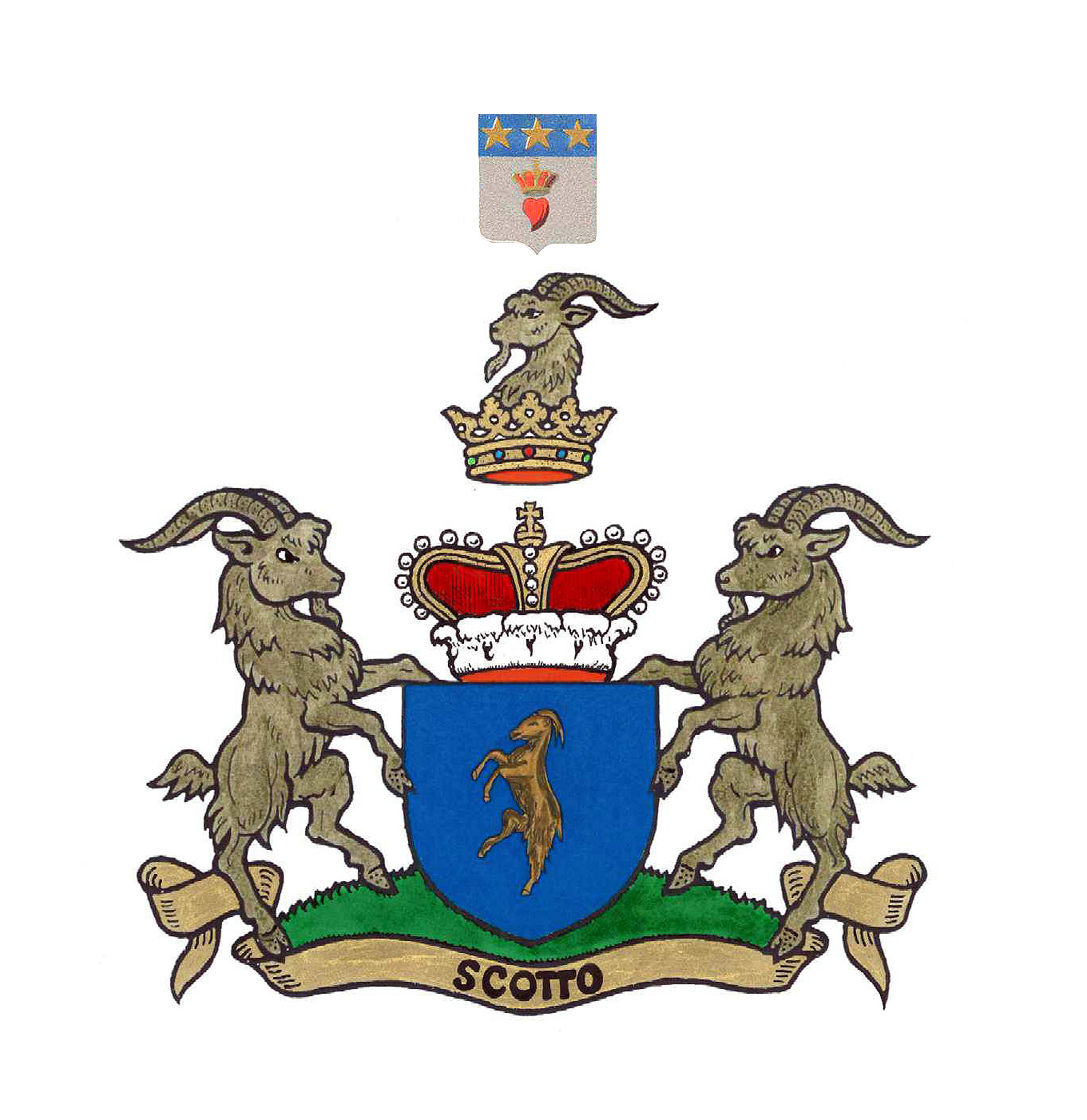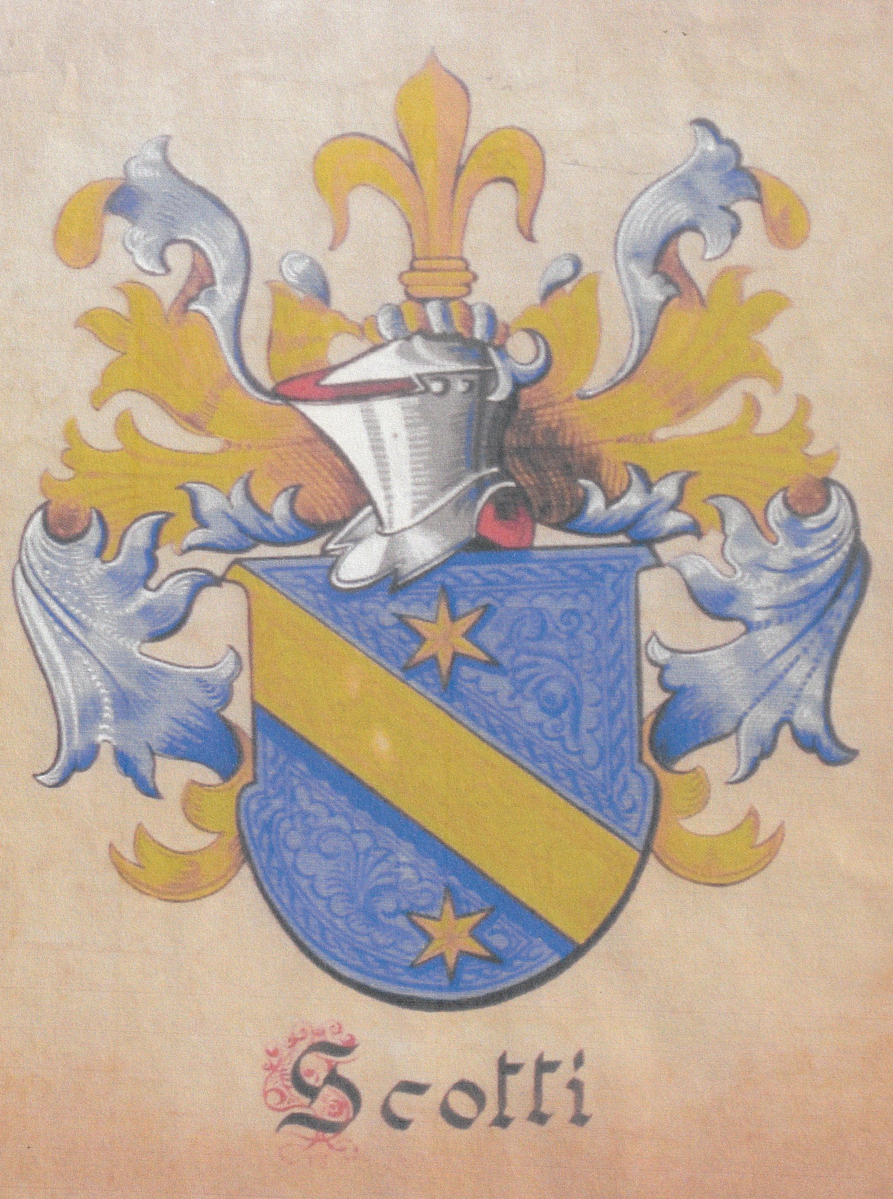 The Two Stars: These are "mullets" (six-pointed stars), which are a central part of the Scotti family heraldry.