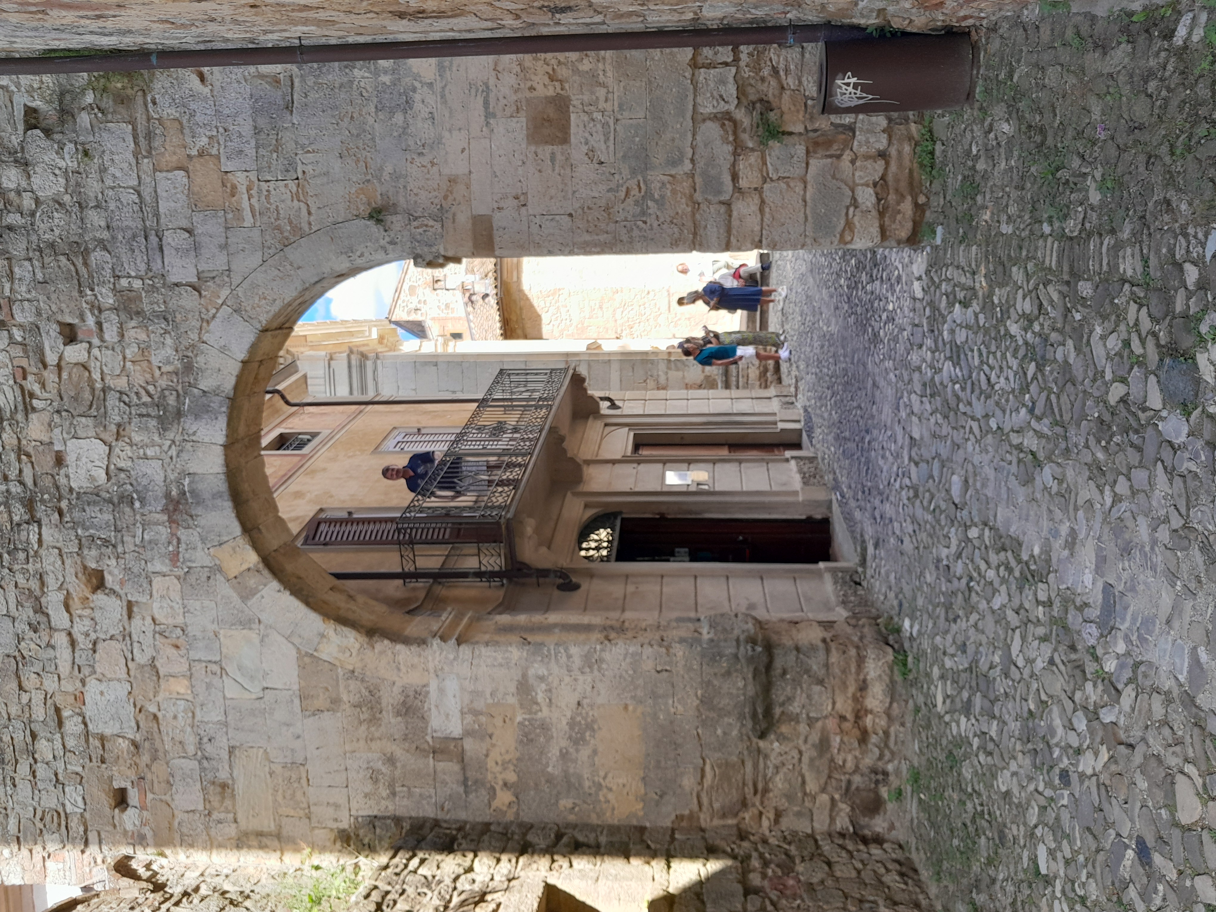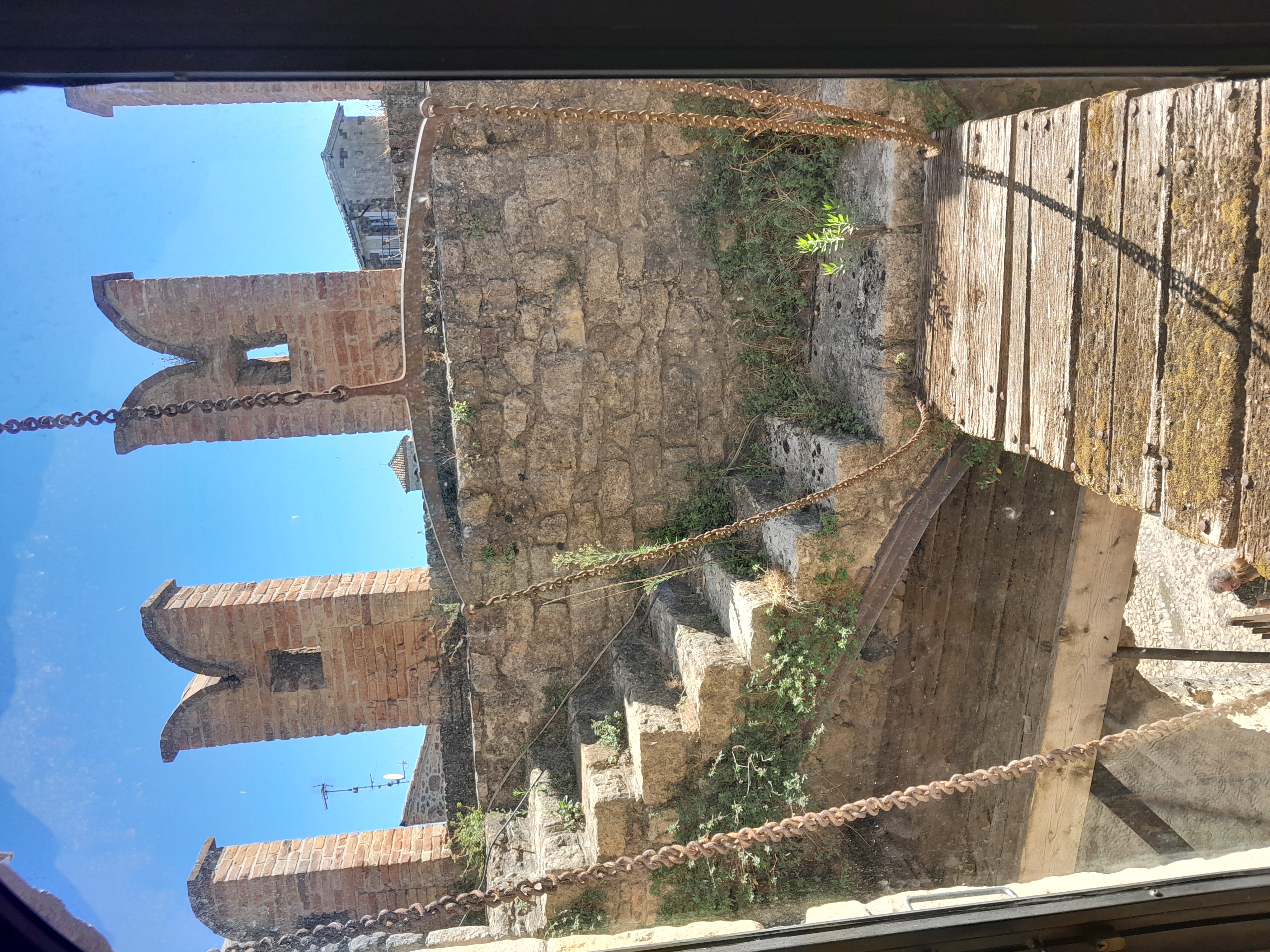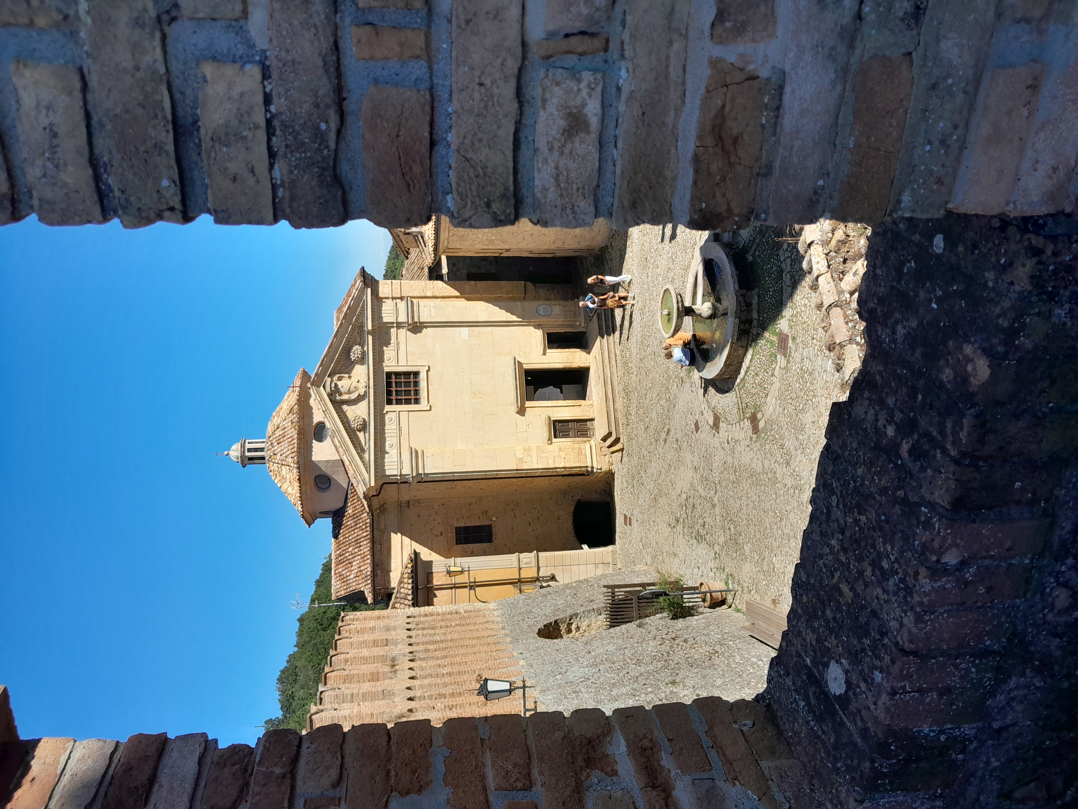 The present walls and towers took shape between the 12th and 15th centuries, forming a compact defensive system of ramparts, battlements, and patrol walkways. Within the enclosure stands the Castello Palazzo, the residential heart of the estate.