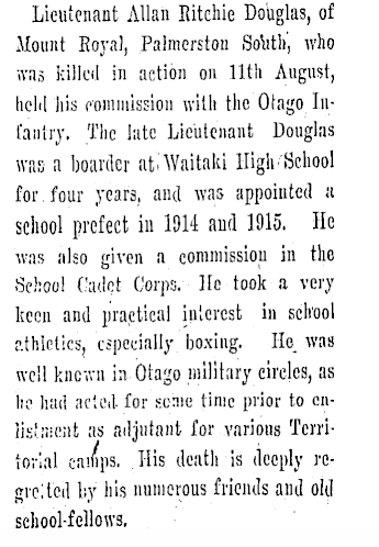 Auckland Cenotaph Allan Ritchie Douglas death notice