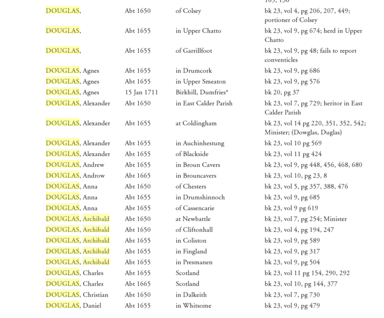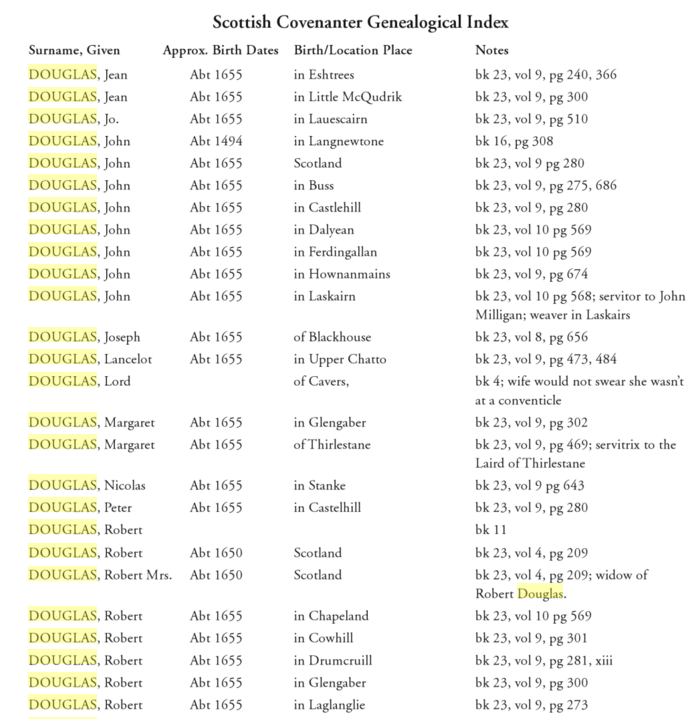 Charles Douglas, possibly from the Dumfries area, and William Douglas, possibly of Bridge of Ken, were both transported to New Jersey on the Henry & Francis having been held prisoner in Dunnottar Castle.
