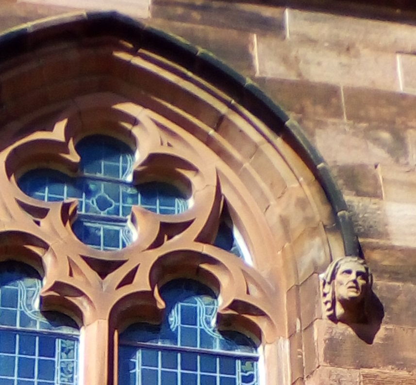 Above each of the windows, on the outside, are two figures of local