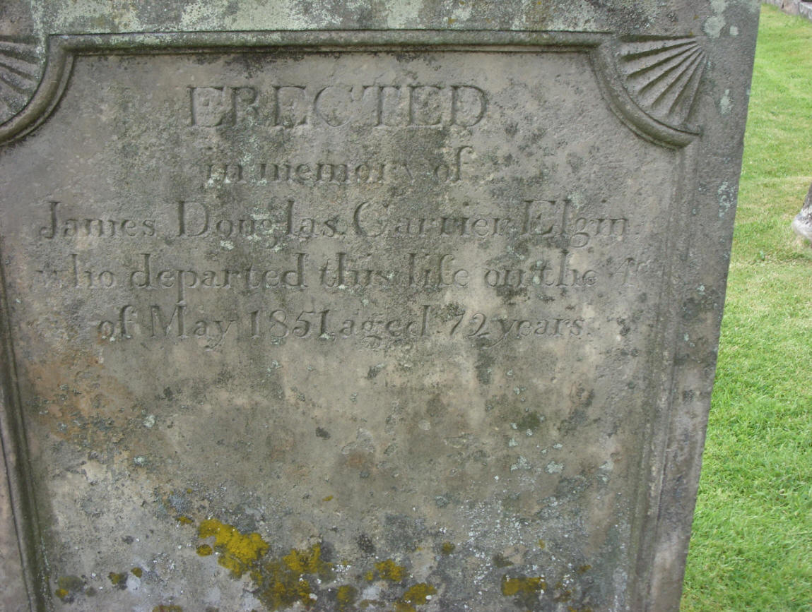 James Douglas: (The father) A carrier in Elgin who died in May 1851 at age 72.