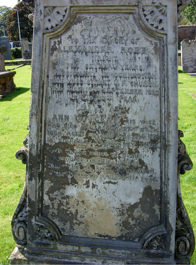 a. TO THE MEMORY OF ALEXANDER ROBB WRIGHT FOR SEVERAL YEARS MISSIONARY IN CONNECTION WITH MOSS STREET U.P. CHURCH WHO DIED 14TH SEPTEMBER 1883 IN HIS 80TH YEAR.