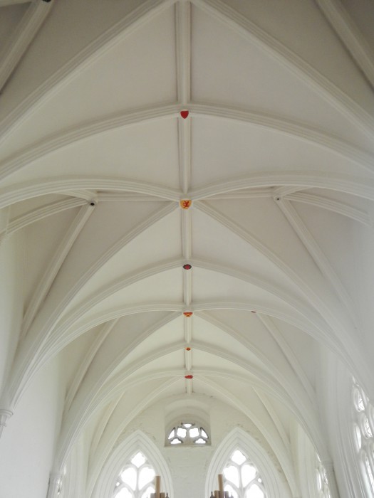 vaulting on the choir ceiling. The vaulting boasts lovely painted bosses