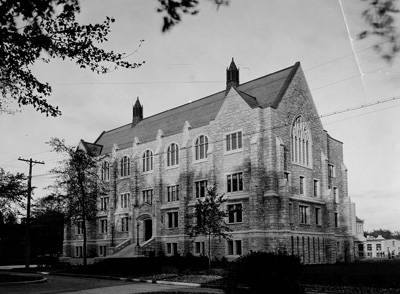 This Douglas Library is the oldest of Queen's libraries. The southern half of the building was completed in 1923-4 and is faced with Kingston limestone; the northern part, built in the same neo-gothic style but faced with Queenston limestone, was added in 1966 and features three underground floors.