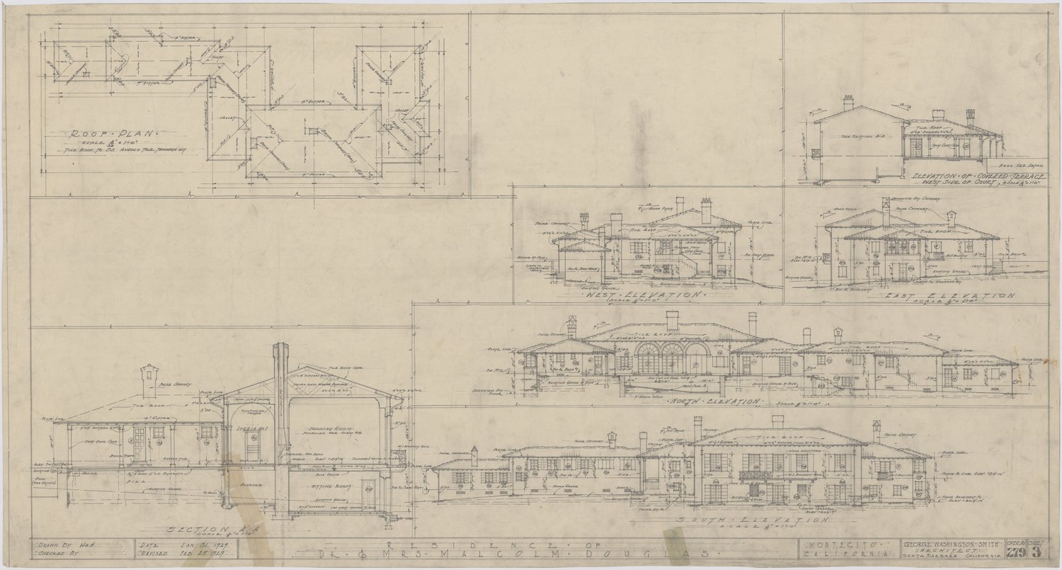 Douglas, a New York doctor, and his wife, Rachel Peabody Douglas, had Smith design a house to showcase the view of the Pacific Ocean and Channel Islands, with a long curving driveway and many landscape features including a pool and lily pond.