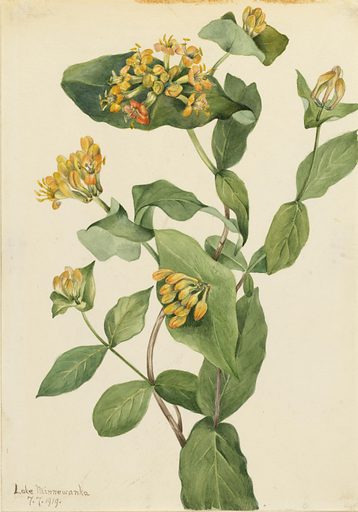 Douglas Honeysuckle, scientifically known as Lonicera glaucescens, appears to be a variation of Lonicera dioica, commonly called Limber Honeysuckle.