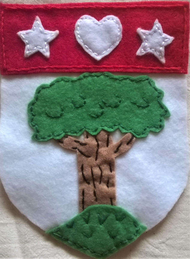 * Crest: The family uses a distinctive crest: A dexter hand holding aloft a