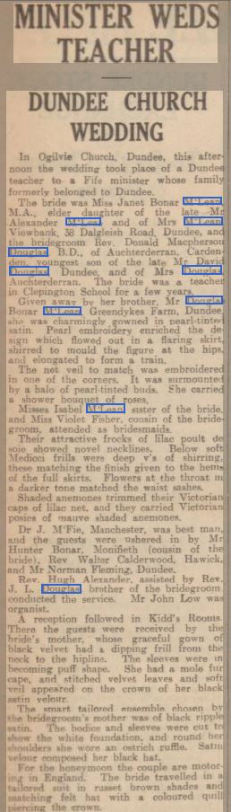Rev Donald MacPherson Douglas married Janet Bonar McLean (1907 -