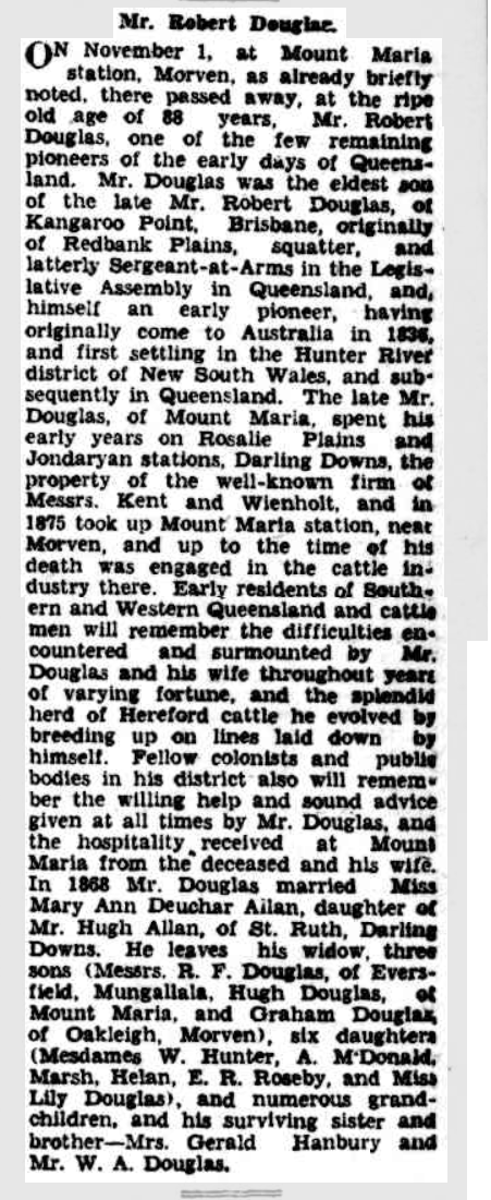 Robert Douglas of Kangaroo Point came to Australia in 1839,