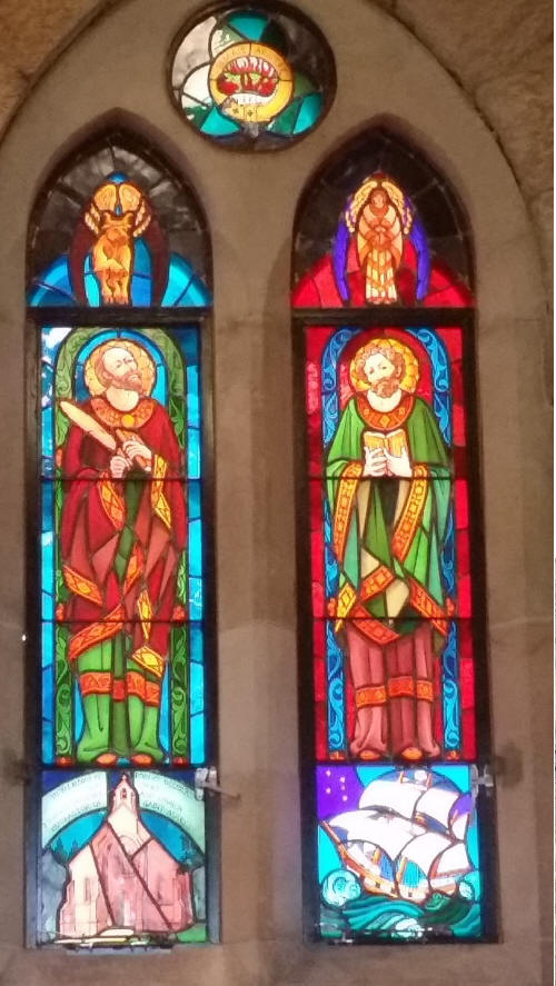 the traditional symbol for Luke. A depiction of St. Mary’s Church on the