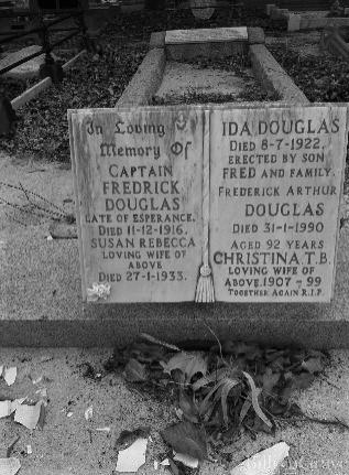 Frederick Douglas was born on the 8th July 1850 in Hinxton, Cambridgeshire, England, and was the second son of Thomas Douglas and Phoebe Wisbey. He came to Fremantle, Western Australia in 1852 on the sailing ship “Sabrina” with the rest of the family and was renown as a coastal sea captain operating on the south coast of Australia between 1873 and 1910. Frederick was the owner of the vessels “Agnes” and “Grace Darling”. Master of the tub called “Bruce” and a Master Mariner, holding the certificate of competency #121, Western Australia.