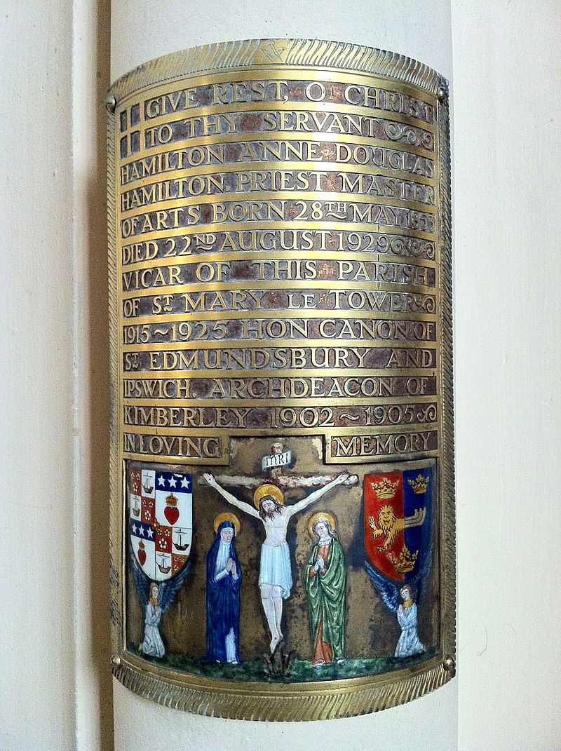 The Revd H. A. Douglas Hamilton was appointed Rector of Latimer, Chesham and chaplain to Lord Chesham before becoming Vicar of Holy Trinity Church in 1891. In 1898, he was appointed rector of Old Charlton, Rochester. From 1915 to 1925 he was Vicar of St Mary le Tower, Ipswich.