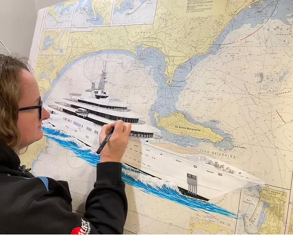 boats painted onto Navigational charts.