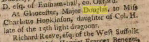 Douglas married 17 June 1797, at Gloucester, Charlotte, daughter