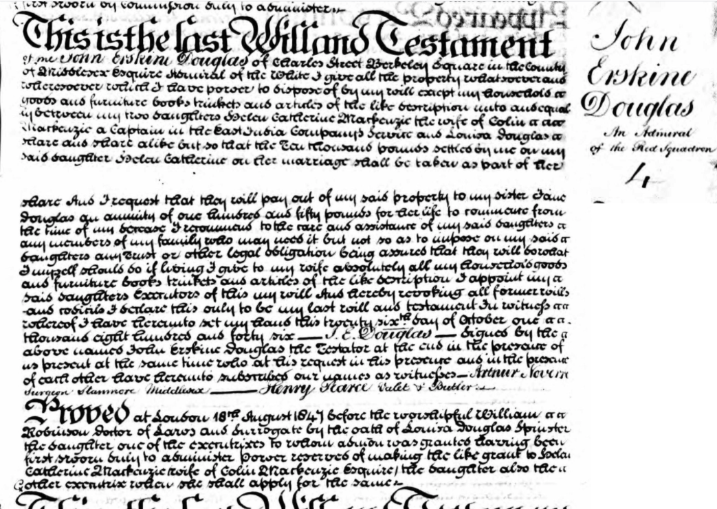 Admiral John Erskine Douglas. The deceased has left a truly affectionate and