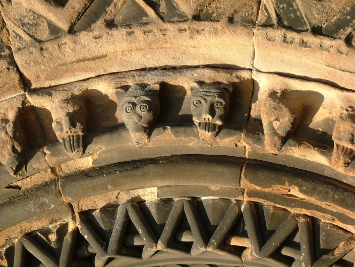 faces on the Monteath Douglas mausoleum