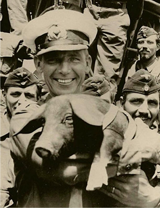 When the U-boat returned to Lorient the pig was presented formally as booty to Victor Schütze, the commander of the Second Flotilla.