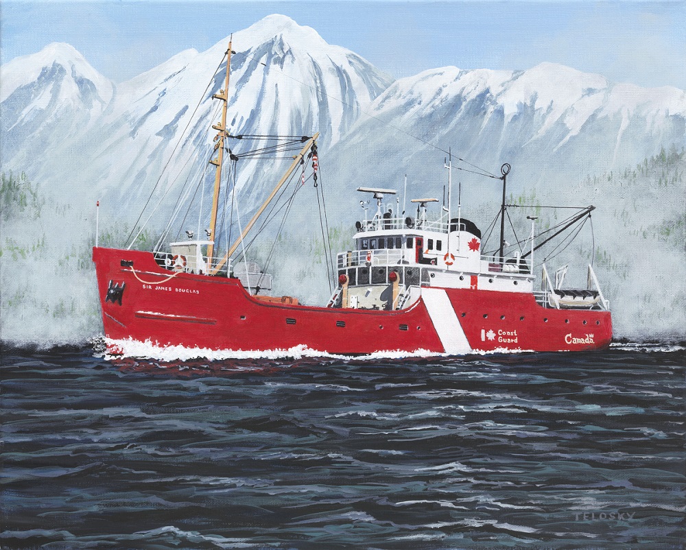 Painting: 'A decommissioned Canadian Coast Guard vessel underway in better days' by Dan Telosky, a Canadian marine artist.